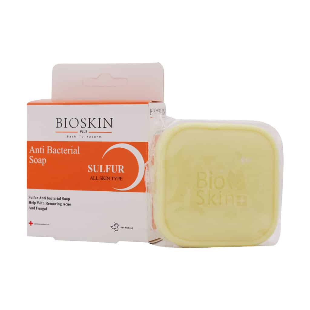 صابون آنتی باکتریال گوگرد بایو اسکین پلاس با باکتری‌های مولد آکنه مبارزه می‌کند. همانطور که می‌دانید آکنه به دلایل متعددی همچون عوامل ژنتیکی، رسیدن به سن بلوغ، تغییرات هورمونی، استرس زیاد و فشار عصبی، استفاده از داروهای خاص همچون کورتیزول و افزایش فعالیت غدد ترشح چربی بوجود می‌آید. خوشبختانه صابون آنتی باکتریال بایو اسکین حاوی گوگرد است، تحقیقات بسیاری نیز تاثیر گوگرد در درمان آکنه را ثابت نموده است. علاوه بر آن گوگرد رنگ پوست را روشن می‌کند، لک‌های پوستی را کاهش داده و التهابات را بهبود می‌بخشد. لایه‌ برداری سلول‌های مرده، جلوگیری از ابتلا به بیماری‌های عفونی و کاهش تولید سبوم از جمله فواید گوگرد موجود در این صابون است. شما می‌توانید برای خرید و مشاهده قیمت انواع صابون به دسته بندی مربوطه در داروخانه آنلاین رسالت مراجعه نمایید.