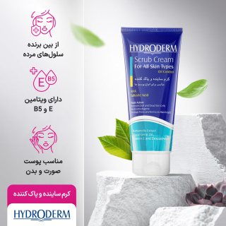 کرم ساینده و پاک کننده هیدرودرم یک اسکراب کرمی برای صورت و بدن است که به شکل دوره ای استفاده می شود و حس پاکسازی حرفه ای و خوشایند می دهد. فرمول آن با تکیه بر کمپلکس ساینده همراه با AHA، اسید سالیسیلیک و تری‌کلوزان تهیه شده تا هم زمان با برداشتن لایه های فرسوده، سطح پوست تمیز بماند. حضور عصاره هاماملیس، روغن جوانه گندم و ویتامین های E و B5 از بافت پوست مراقبت می کند و به لطافت و یکنواختی کمک می کند.