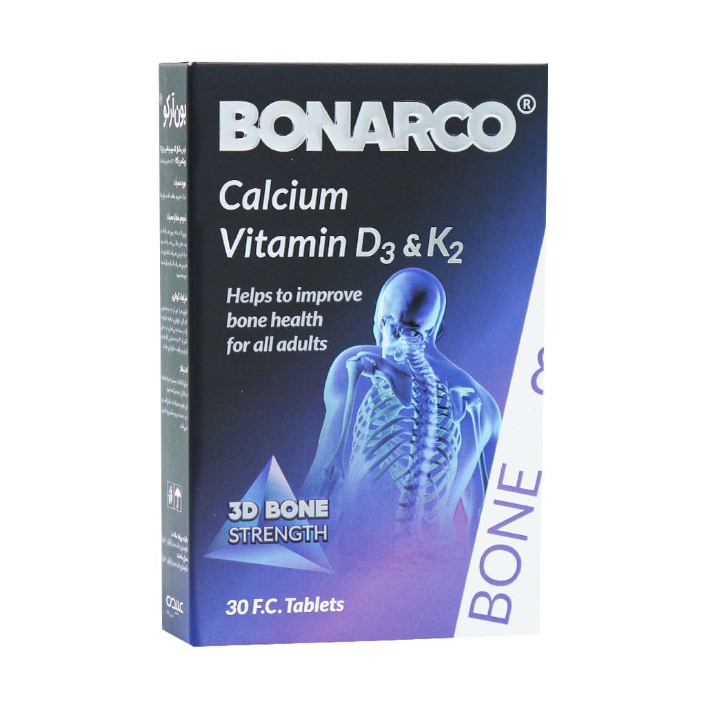 قرص مکمل بون آرکو (Bonarco®) حاوی ویتامین K2 است. با توجه به اینکه این ویتامین معمولا به صورت رایج و کافی در بدن دریافت نمیشود؛ اهمیت وجود ویتامین کا2 در سلامت استخوانها بسیار بالا است. این ویتامین نقش بسیار مهمی در متابولیسم کلسیم دارد و موجب فعال شدن پروتئینهای متصل به کلسیم میشود. به طور کلی به خواص ترکیبات موجود در محصول اشاره کردیم؛ این محصول سازگاری بالایی با سلامت قلب دارد. ویتامین کا 2 با جلوگیری از پدیده کلسیفیکاسیون کلسیم (انباشت کلسیم) در سرخگها به سلامت قلب کمک میکند. مکمل پیشگیری از پوکی استخوان بون آرکو مورد تایید سازمان غذا و داروی ایران است و از کیفیت بالا و قیمت مناسبی برخوردار است.