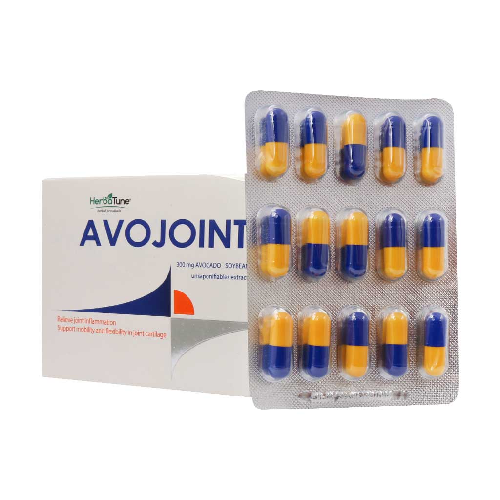 کپسول آووجوینت هرباتیون با منشا گیاهی دارای اثر مغذی بر بافت همبندی است. این تاثیر با تحریک سنتز پروتئوگلایکانها، کلاژن و بازسازی غضروف موجب میشود که ساختمان غضروف به حالت طبیعی برگردد. همچنین مصرف این فراورده دارای اثر بازدارندگی روی کلاژناز تیپ دو و PGE2 است و آن را به بهترین مکمل برای مفاصل و غضروف تبدیل نموده است. عصاره آووکادو که ترکیب اصلی قرص آوجوینت است اسیدهای آمینه متعددی مانند سیستئین، تیروزین و تریپتوفان دارد. به همین خاطر این گیاه برای رفع درد زانو توصیه شده و دارای اثرات ضد التهاب و تسکین دهندگی است. علاوه بر آن عصاره سویا منبع اسیدهای چرب، فولات، پروتئینها و ویتامینهایی است که در سلامت انسان نقش دارند. پروتئین سویا حاوی فیتواستروژن است که باعث جذب بیشتر کلسیم در بدن و جلوگیری از زوال توده استخوانها میشود.