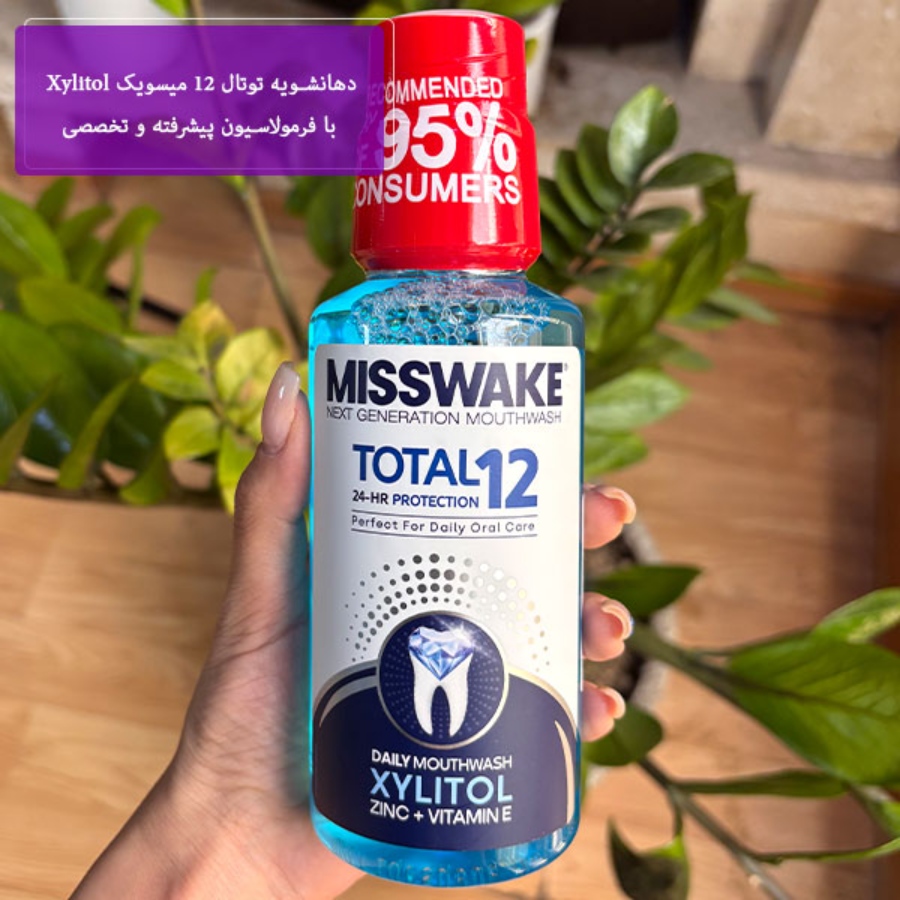دهانشویه توتال 12 حاوی زایلیتول میسویک یک محصول تخصصی 12 کاره جهت محافظت کامل از دهان و دندان‌ها است که با فرمولاسیون منحصر به فرد باعث کاهش پلاک‌های میکروبی، جلوگیری از بوی بد دهان و تقویت سلامت لثه‌ها می‌شود. این دهانشویه با داشتن ماده موثره زایلیتول و با خاصیت ضد باکتریایی مانع رشد میکروب‌های مضر در دهان شده و به جلوگیری از پوسیدگی دندان‌ها کمک می‌کند.